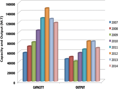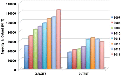 Changes of capacity and output of sponge titanium in the last 8 years in China