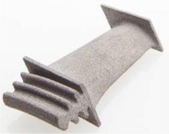 A 3D-printed turbine blade fabricated using selective laser sintering at The University of Sheffield using Metalysis spherical powder