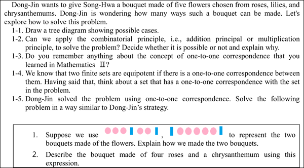 We can see useful strategies for solving the task such as tree diagrams, addition principle or multiplication principle, and one-to-one correspondences are explicitly introduced in the task so that learners can recognize effective paths to the solutions by achieving accuracy and correctness. Sticking to a narrow range of obviously relevant information on combinatorial problems (Cropley 2006, p. 392), learners may easily grasp the mathematical idea behind the problem context. Opportunities these kinds of tasks provide learners are related to CT rather than DT. Indeed, the majority of PTs said giving learners clues is necessary because the content they are working on is new and unfamiliar to them. Participants in the study considered orthodoxy indispensable and even essential in order to help learners grasp the material.