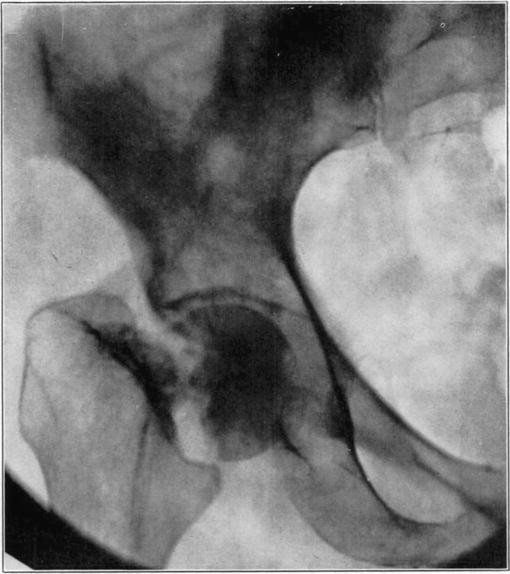 The hip showed about forty degrees of flexion but marked limitation of abduction and rotation. Its strength had gradually improved and there was only slight discomfort in walking unless it was prolonged.