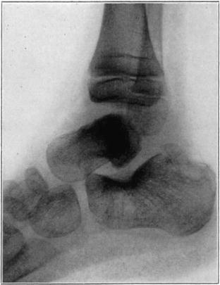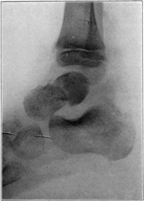 Case 3. Eighteen months after injury, showing a defective but gradually reforming articular portion of the body of the astragalus.