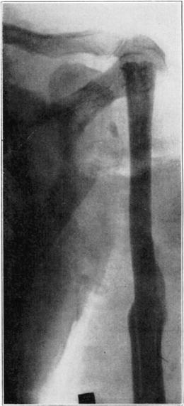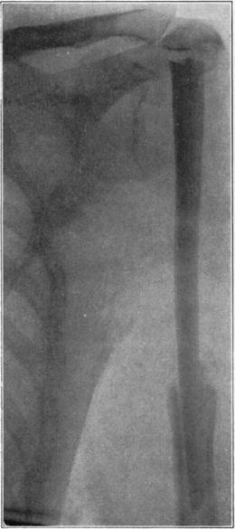 The etiology of the lesions dealt with up to this point has been clear. The röle of embolism in the production of both septic and aseptic bone necrosis is still imperfectly understood. Ritter, Winkebauer and Axhausen [11] have expressed the belief that in pyogenic osteomyelitis the extensive necrosis of bone is the result of septic embolism cutting off the blood supply of large areas at the onset of the process with subsequent invasion and infection of the infarcted area by bacteria from the embolus. This view is inconsistent with our knowledge of the blood supply of the cortex of the shaft of bones. The experiments of Johnson [12] showed that the periosteal vessels supply approximately the external half, while the internal half is supplied by the nutrient artery and metaphyseal vessels. Injury of either set of vessels results in necrosis of much of the bone which they supply. Now the dead bone in osteomyelitis is not limited to the region supplied by one or the other of these sets of vessels. While an embolus might account for extensive necrosis in the region supplied by the nutrient artery, this would be impossible in the regions supplied by the periosteal vessels since they are numerous and small. Usually the entire thickness of cortex of the involved region becomes necrotic. Also in primary and especially in recurrent osteomyelitis the infection may be observed, starting at one limited point and spreading more or less extensively to the rest of the bone.