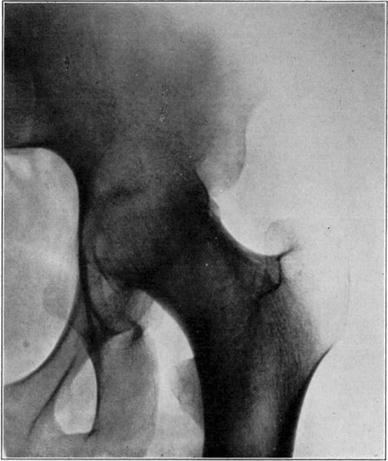 The cause for this exceptional occurrence of necrosis of head and neck without sequestration appeared to lie in the traumatism of head and denudation of neck of its covering of soft parts. However, it may have been due in part to deep-seated mild infection in the region of the new joint, despite the absence of discharge from that region. Failure of the necrotic head to be sequestrated speaks decidedly in favor of aseptic instead of septic necrosis although sequestration may not occur in the presence of mild infection of a necrotic area. In another case I observed necrosis of the head and neck following an arthroplasty in which there was infection of the wound with a purulent discharge, but the dead bone was sequestrated in the course of several weeks. In the case here reported functional stimulation of the bones resulting from movement of the joint, combined with protection of the necrotic head from weight-bearing, was followed by creeping substitution of the necrotic bone by new bone in the greater part of the head without either erosion of dead bone or the development of marked deformity.