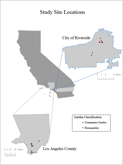 Southern California provides an exemplary case study of joint human and plant migration. California immigrants from Mexico and Mesoamerica frequently maintain plots of crops from their homelands in urban home gardens and community gardens. Home gardens are typically small, multi–species agroecosystems located near their associated household (Galluzzi et al. 2010), whereas community gardens are characteristically larger in size and composed of individual plots with additional common areas where garden meetings and other social events take place. Such gardens have recently been hypothesized to serve as reservoirs of genetic as well as taxonomic diversity (Altieri and Merrick 1987; Corlett et al. 2003; Galluzzi et al. 2010; Hodgkin 2002; Hoogendijk and Williams 2002; Watson and Eyzaguirre 2002; Zaldivar et al. 2004).