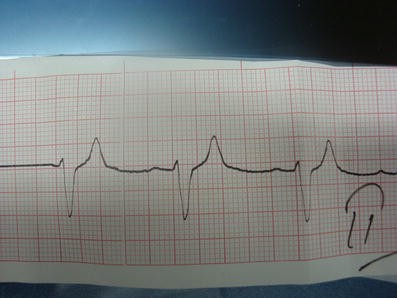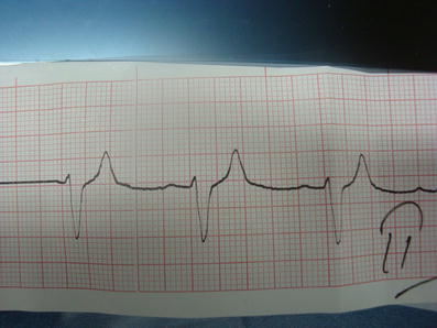 Lead II of the ECG done after an hour of initiation of medical management showing improvement of heart rate and reappearance of the p waves