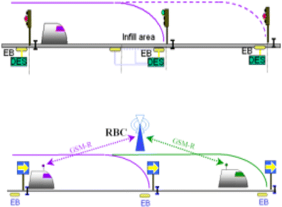 ▪ GSM-R (GSM for Railways) is the radio system used for information transmission between the track and the train. It is based on the standard GSM but using different frequencies specific to rail.