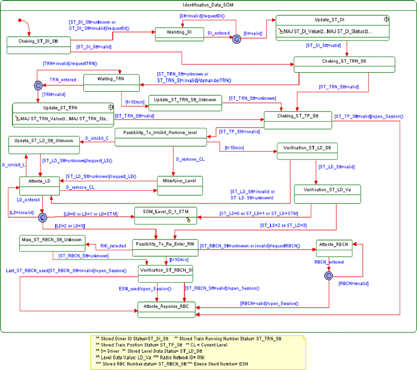 The procedure Start of Mission (SOM) allows the start of a train and it is triggered by the driver in these cases: Once the train is awake, or once shunting movements are finished, or once a mission is ended, or once a slave engine becomes a leading engine. The common point of all these situations is that the ERTMS/ETCS on-board is in Stand-By mode, but the Start of Mission will be different, since some data may be already stored on-board, depending on the previous situation. Once the ERTMS/ETCS on-board equipment is in Stand-By mode, the start of mission is not the only possibility; the engine may be remote controlled (sleeping). At the beginning of the Start of Mission procedure, the data required may be in one of three states: “valid” (the stored value is known to be correct) or “Invalid” (the stored value may be wrong) or “Unknown”. This refers to the following data: Driver ID, ERTMS/ETCS level, RBC ID/phone number, Train Data, Train Running Number and Train Position.