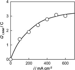 Electric charge of the reverse current as a function of the current density during 60 min electrolysis