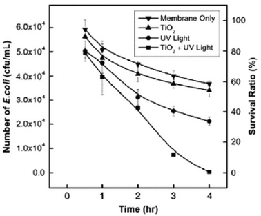 Hybrid organic/inorganic RO membrane process is carried out by coating RO membranes with inorganic particles by direct deposition or via interfacial polymerization process. Inorganic particles include photocatalytic titanium dioxide (TiO2), SiO2, Zeolite A, and silver nanoparticles (Kang and Cao 2012). Nanomaterials also include chitosan, aqueous fullerene nanoparticles and carbon nanotubes (Matin et al. 2011).