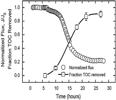 Permeate flux and TOC removal upon growth of biofilm on an RO membrane (Herzberg and Elimelech 2007)