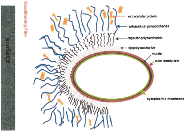 EPS components of a bacterium encountering a non-biological surface in water (Tamachkiarow and Flemming 2003)