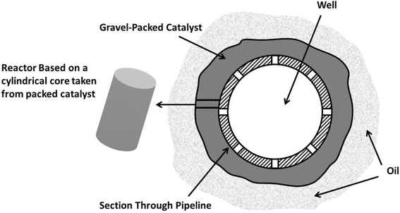 Cross-section of production well with gravel-packed catalyst layer
