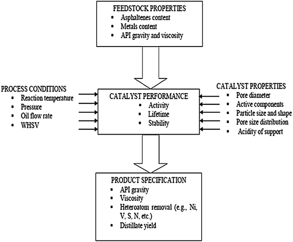Parameters affecting the performance of heavy oil upgrading catalysts
