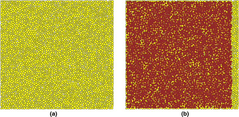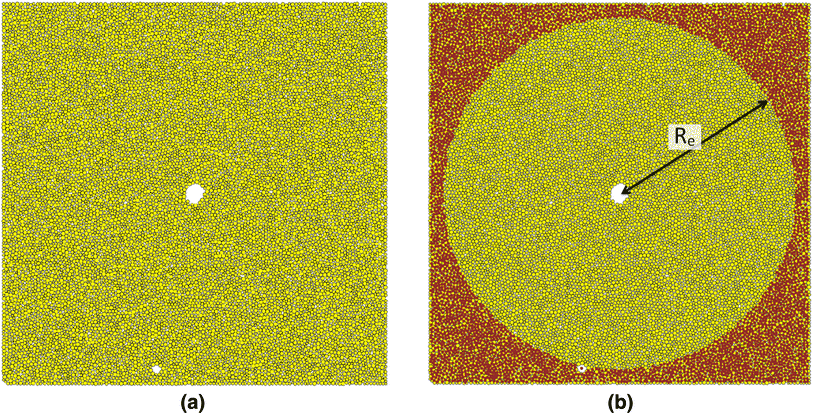 a Reservoir with wellbore at centre, b Reservoir with boundary pressure of \(7\;{\text{MPa}}\). Brown circles show domain pressure