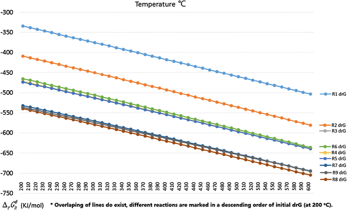 \(\Delta_{r} G_{m}^{\theta }\) of methanol to olefins and gas olefins to alkanes at 200–600 °C