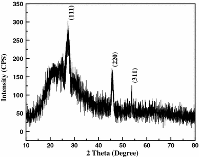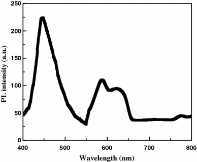 Film thickness (175 nm) was measured using Filmetrics measurement system. The crystalline structure of the films was studied by X-ray diffraction measurements obtained with a Rigaku X-Ray Diffractometer in the 2θ range of 10°–80° using CuKα radiation of wavelength λ = 1.5406 Å. The X-ray tube was operated at 40 kV (voltage) and 30 mA (current) with scanning speed of 0.5°/min. The chemical compositions, as well as the morphology of the ZnSe thin films were observed with HRSEM (model FEI QUANTA 200F) equipped with EDX facility. Absorption spectra were recorded with a Shimadzu UV-1601PC spectrophotometer at normal incidence. All the measurements were made at room temperature with a blank glass substrate in the reference beam path. Photoluminescence measurement was performed at room temperature using a Perkin-Elmer LS-55 luminescence spectrometer with excitation wavelength of 380 nm.