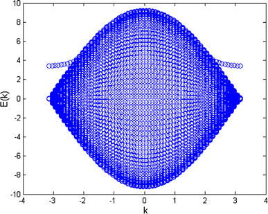 A brief account is given here on phonon bound state or breather state. Despite our work on discrete breathers (Bandyopadhyay et al. 2010; Giri et al. 2011b), so far the pinning has been explained classically, thereby prompting us to think about quantum explanations that have been briefly explored for ferroelectrics, such as lithium niobate with the impurity data (Biswas et al. 2011a). Although impurity data for lithium tantalate (as antisite tantalum defects) are not available, we could work through Landau coefficient or nonlinearity route to explore if there is also pinning in such systems (see later). For quantum breathers, it is important to consider detailed information on phonons and their bound-state concept, which is sensitive to the degree of nonlinearity. In the eigenspectrum or more traditionally E k versus k plot, a quantum breather band separates itself from the delocalized phonon-band. Or in other words, it is the hopping tendency of the phonons that describe the quantum breathers. So, let us consider that the phonons in one sublattice may hop from one domain to another adjacent domain. This hopping might have some consequences with the change of nonlinearity or poling field for ‘switching’ that is again related to the impurity in the lattice, thereby the ‘hopping strength’ can be directly related to this phenomenon. It is determined by finding the phonon-band energy gap (i.e., the energy gap between the delocalized and localized phonons) in the usual eigenspectrum (Flach and Gorbach 2008; Nguenang et al. 2007).