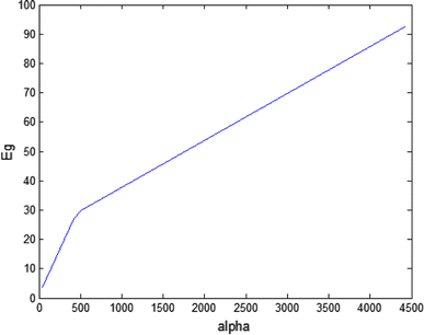 Variation of the energy gap (Eg) in eV that is calculated from Eq. (10) is shown against nonlinearity (dimensionless) in lithium tantalate for a constant coupling of 10