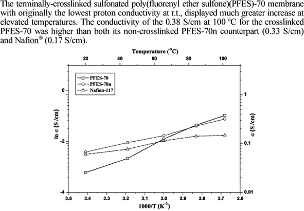 polymer electrolyte membrane sulfonated poly(fluorenyl ether sulfone) terminal crosslinking proton conductivity dimensional stabilityPreview