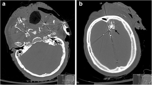 - 51.Kim PE, Go JL, Zee C (2002) Radiographic assessment of cranial gunshot wounds. Neuroimaging Clin N Am 12:229–248PubMedCrossRefGoogle Scholar