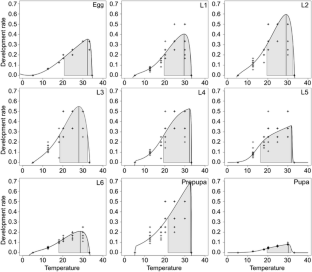 Rebaudo F, Struelens Q (2016) devRate: quantify relationship between developmental rate and temperature in Ectotherms. R CRAN package, version 0.1.0