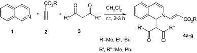 Synthesis of functionalized 1,2-dihydroisoquinolines via one-pot reaction of isoquinoline, alkyl propiolate, and 1,3-diketones