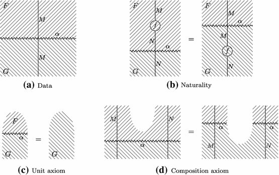 A graphical picture of Proposition 2.10(ii) is shown in Fig. 11b. It is easy to give a direct proof of this equality by successive applications of the axioms in Fig. 10. In fact, there is an even easier proof: application of Proposition 2.7 to \(F\) and \(G\) reduces the desired statement to naturality of \(\alpha \). However, this easy proof will no longer be available in the bicategorical case.