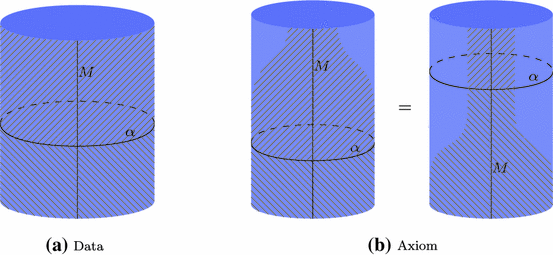 The proof of (ii) is the first (and only) time in the paper that we do not need to invoke the actual definition of the bicategorical trace: all we need are the properties proven in Sect. 7 and the axioms of a conjunctional transformation. Thus, we can now simplify the pictures by drawing the bicategorical trace with a plain loop around the back of the cylinder, rather than breaking it down into coevaluation, shadow, and evaluation. With this convention, the proof is shown in Fig. 30. In the first step, we apply Proposition 7.5 to replace \(\mathrm{tr }(\alpha _P)\circ \mathrm{tr }(\mathfrak c ^{-1}\circ Ff\circ \mathfrak c )\) by the trace of a composite. Secondly, we use part (i) to introduce an instance of \(\alpha _M\) and its inverse. In the third step, we use the axioms of Fig. 27 to slide the \(\alpha \) string across \(\mathfrak c ^{-1}\circ Ff\circ \mathfrak c \). We then use Proposition 7.2 to bring \(\alpha _M\) around the back of the cylinder, so that we can cancel it with its inverse. Finally, we apply Proposition 7.5 again to obtain \(\mathrm{tr }(\mathfrak c ^{-1}\circ Gf\circ \mathfrak c )\circ \mathrm{tr }(\alpha _Q)\), as desired.