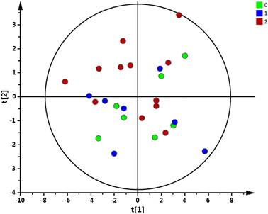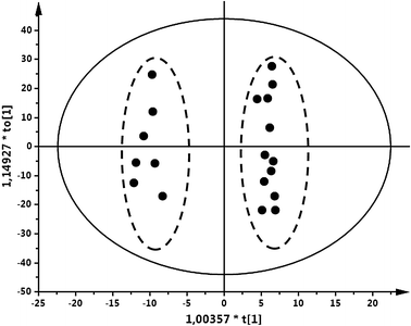 Nuclear magnetic resonance spectral data were collected and analysed using SIMCA-P+ 12.0.1 software (UME-TRICS, Umeå, Sweden). The data sets were centred and pareto-scaled before statistical analysis with principal component analysis (PCA) and orthogonal partial least squares-discriminate analysis (OPLS-DA). The PCA model was used to look for outliers and to identify any clustering pattern with regard to the different diets. The outliers were determined using PCA-Hotelling T2 Ellipse (95 % CI). The normality of multivariate data was tested using probability plot of PCA model. PCA models including all three diets or two diets at a time were fitted (FM vs. FZ, FM vs. ST, and FZ vs. ST).