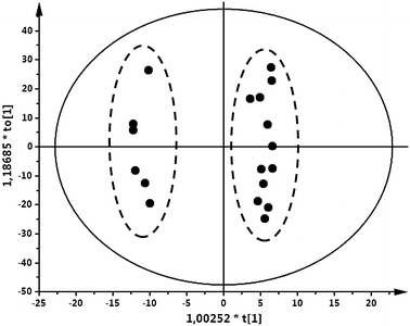 The significance of the OPLS-DA model was tested using cross-validated ANOVA (CV-ANOVA), which is a diagnostic tool for assessing the reliability of OPLS models. The diagnostic is based on an ANOVA assessment of the cross-validatory predictive residuals of an OPLS-DA model. Cross-validated ANOVA tests whether the model has significantly smaller cross-validated predictive residuals than just the variation around the overall average (Eriksson et al. 2008).