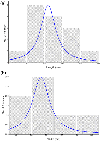 Histograms showing a average length of nanostrips, b average width of nanostrips