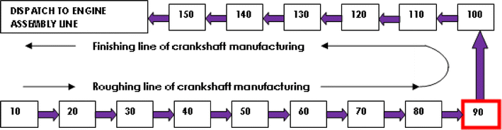 | 1 | Total no. of rejects and rework per day, i.e., three production shifts of 8 h each | =15 crankshafts |