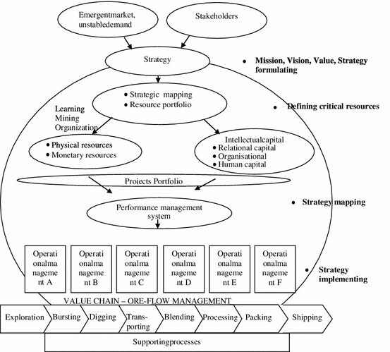 During preliminary research, the targeted mining company was found conservative and resistant to changes. The reasons for this were peculiarities of historically determined mining business: the size of the company is relatively large; hierarchical structure and functional management are used; and clients are not sophisticated enough, in comparison with goods manufacturing companies. All of these features perfectly fit definition of a “mechanistic” organizations, which is considered in the business western literature out dated and ineffective. The traditional approach to mining management, which is strong hierarchical and non-flexible, emanates from the Soviet Union’s hierarchical planned systems and is still performed through the CEO approving long-term, medium and short-term pit development plans, which are usually weakly related to the market demand (Tsekhovoy and Statsenko 2010). In emergent market economy, these traditional organizational structures and management practices largely geared to the mass production of ore of a certain quality for stable federal orders which are not adequate as they do not provide aligning the operational activity with the organizational strategy of the mining company. Moreover, the current situation has shown that the top leadership of the mining company do not fully realizes the necessity of systemic organizational change, trying to cope with significant challenges by means of backfired approaches such as cost cutting and staff reduction strategies.