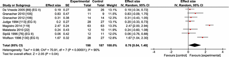 Meta-analysis of the effects of resistance training on the gait speed of healthy old adults. CI confidence interval, IV inverse variance, SE standard error