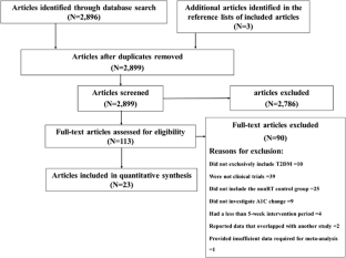 Studies were included if they (1) were clinical trials consisting of two groups with and without RT exercise intervention; (2) had an intervention period of at least 5 weeks; (3) clarified that all patients had T2DM; and (4) reported or made it possible to estimate the effect size [i.e., change in glycosylated hemoglobin (HbA1c) in the RT group minus that in the control group] and its corresponding standard error.