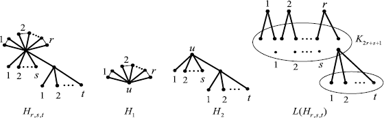 H r,s,t , the subgraphs H 1 and H 2 of H r,s,t , the line graph L(H r,s,t ) of H r,s,t