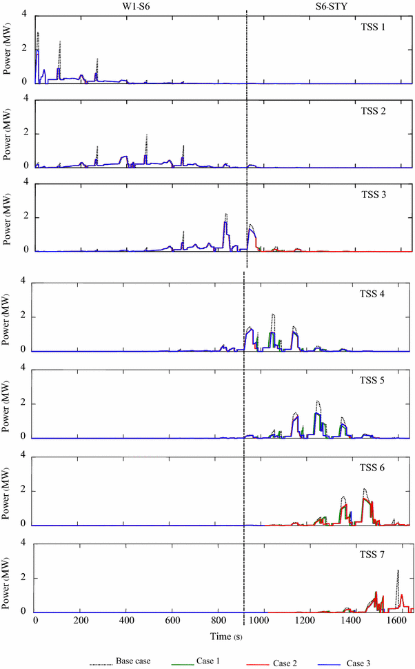 | Case | \(P_{{{\text{TSS}}1}}\) (MW) | \(P_{{{\text{TSS}}2}}\) (MW) | \(P_{{{\text{TSS}}3}}\) (MW) | \(P_{{{\text{TSS}}4}}\) (MW) | \(P_{{{\text{TSS}}5}}\)(MW) | \(P_{{{\text{TSS}}6}}\) (MW) | \(P_{{{\text{TSS}}7}}\) (MW) |