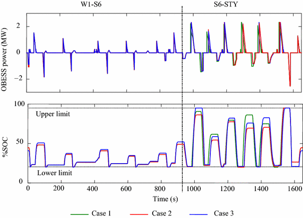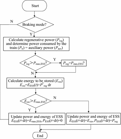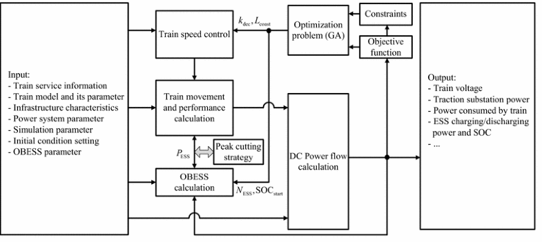 In general, the purposes of the regenerative braking energy management with OBESS are increasing energy efficiency [7, 8, 9], reducing peak power of substations [10] and stabilizing network voltage [11, 12]. The research presented in this paper is devoted to reducing substation peak power mainly in DC metro systems. In Ref. [10], a 25% reduction of the overall railway electricity cost was achieved by reducing substation peak power during train acceleration. In Thailand, electricity tariff consists of 4 types of charges: energy charge (THB/kWh), demand charge (THB/kW), service charge (THB/month) and power factor charge (THB/kvar). The demand charge is defined as the maximum 15-minute integrated demand during on peak over the monthly billing period. Reducing peak power can significantly reduce the total monthly bill. With the OBESS, there are two parameters that affect energy saving: (1) the number of the OBESS modules, which has impact on the effective weight of the train and consequently energy consumption and (2) initial state of charge (SOC) of the OBESS, which has impact on the functional restrictions of the OBESS. Therefore, the problem has been tackled by finding the suitable parameters of the number of OBESS modules and the initial SOC for optimal energy saving. Several energy-saving strategies incorporating OBESS have been presented in the literature, each of which has some difficulties, such as the rule-based strategies (RBS) [11, 13], the strategy based on the SOC [14] and the control strategies based on fuzzy logic [15]. However, optimizing the starting point of OBESS discharge is difficult in real-time simulation.