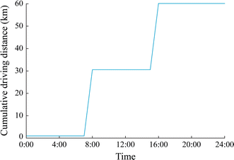 Cumulative driving distance of a vehicle along the day