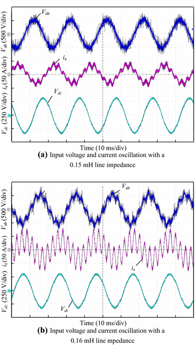 Unstable system simulations (with a line inductance of 8 mH)