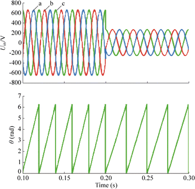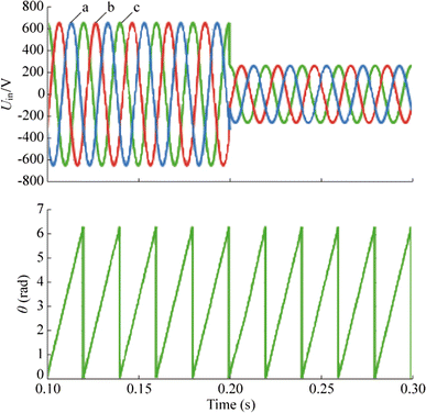 Simulation results for SOGI-SPLL under conditions with input voltage drop