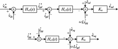 Small-signal control block of PWM rectifier (Hv1(s) and Hc1(s) are the corresponding PI controllers shown in Fig. 2)