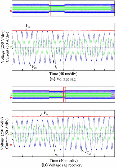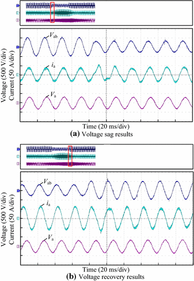 In order to verify the key control strategies of the PET under voltage-disturbance conditions, another PWM inverter that is the same as the front-end converter of the PET operates as a disturbance-voltage source to emulate the grid in the field. Owing to the limited loads, the maximum power is achieved at 30 kW, and the rated system power is 100 kW.