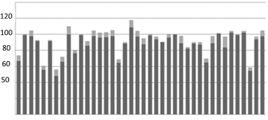 The illustration of estimated values of authority of some particular contributors (dark gray color column for each contributor) and deviations (light gray color) for some of tested discussants for the best version L-CROWD. The authority value can be from 0 to 120 (it is the range of Y values)