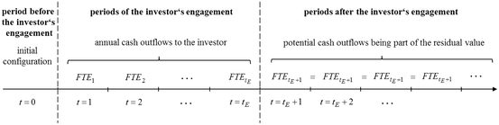 For the lack of existing model-driven approaches that combine the flow-to-equity method with supply chain planning in order to coordinate the return expectations of a financial investor after a business acquisition, we develop a suitable two-phase approach. The latter considers interdependencies between the investor’s decisions during his engagement, and their consequences for the operations after his engagement. Thus, the calculation of the residual value (determining the selling price of the company) is part of the optimization.