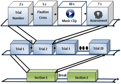 The DEAP database was recorded by using music clips to stimuli emotions in the participants. The music clips used in the experiment were selected in several steps. Initially, the authors selected 120 music clips. Half of these stimuli were selected by semi automatically and another half was selected manually [24]. From the initial collection of 120 music clips, the final 40 test music clips were determined to present in the paradigm. These music clips were selected to elicit emotion prominently. A 1-min segment related to the maximum emotional content was extracted from each music clips, and these segments were presented in final experiment.