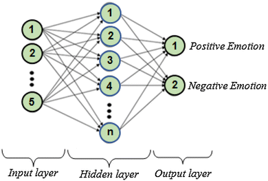The same procedure that was applied for channel selection was employed for the classification of emotions as well. MLPNN output vectors were defined as [1 0] for positive emotion and [0 1] for negative emotion. While training the network, 30 EEG segments are used and 10 EEG segments are used for testing. Single hidden layer with 25 × n × 2 architecture was used to classify EEG related with emotional states. The number of neurons used in the hidden layer is separately determined for each participant. In training stage, learning and momentum coefficients were 0.7 and 0.9, respectively.