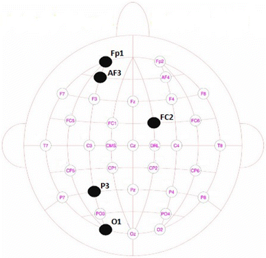 Positions of five EEG channels having the best classification performances