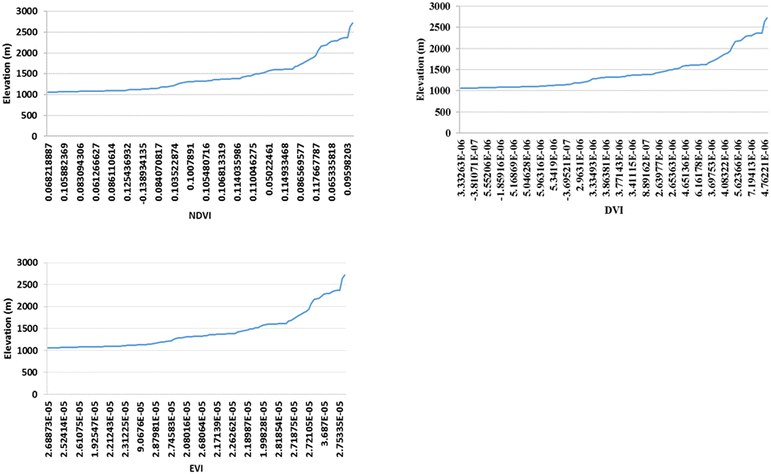 The change of the vegetation indices values with elevation in the study area