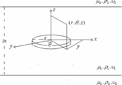 The model of the penny-shaped crack has been analysed as early as 1970’s by F. Erdogan and K. Arin [15, 16]. Then Ueda et al. [17, 18] discussed the problem of torsional impact response of a penny-shaped interface crack. A penny-shaped interface crack of two bonded dissimilar transversely isotropic elastic half-spaces and dissimilar nonhomogeneous elastic layers under axially symmetric torsion have been considered by Saxena et al. [19, 20]. The contact problem for an open penny-shaped crack under normally tension-compression wave has been analysed by Menshykov et al. [21]. Li et al. [22] solved the problem of Coulomb traction on a penny-shaped crack in a three dimensional piezoelectric body. Dovzhik [23] considered the problem of fracture of a half-space compressed along a penny-shaped crack located at a short distance from the surface and Lee [24] discussed the problem of penny-shaped crack in a plate of finite thickness subjected to a uniform shearing stress. A penny-shaped crack subjected to uniform symmetric heat flux has been resolved by Yang et al. [25] and semi-analytical solution for penny-shaped crack in a soft inhomogeneous layer has been solved by Aizikovich et al. [26]. Analysis of crack problems in composite structures is still of significant interests.